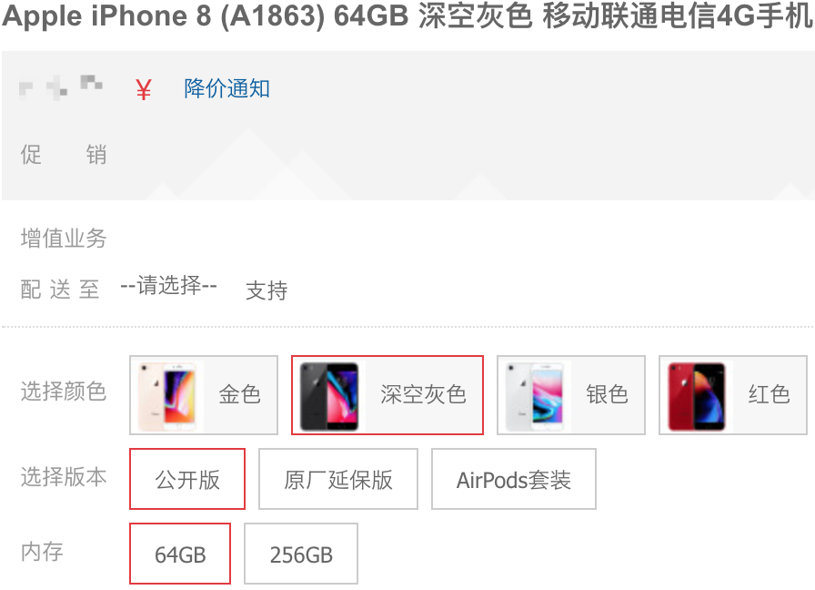 iPhone X 全网通 黑色 256G就是一个 SKU ,表示了具体的规格、颜色等信息。