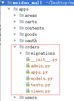 提示: 订单入口在《购物车》页面的《去结算》。 《去结算》后进入到《结算订单》页面,展示出要结算的商品信息。 创建orders子应用