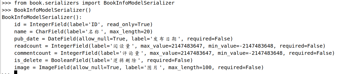 我们可以在python manage.py shell中查看自动生成的BookInfoModelSerializer的具体实现