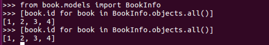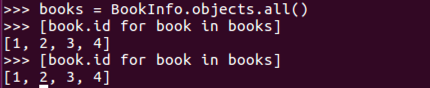 [book.id for book in BookInfo.objects.all()]