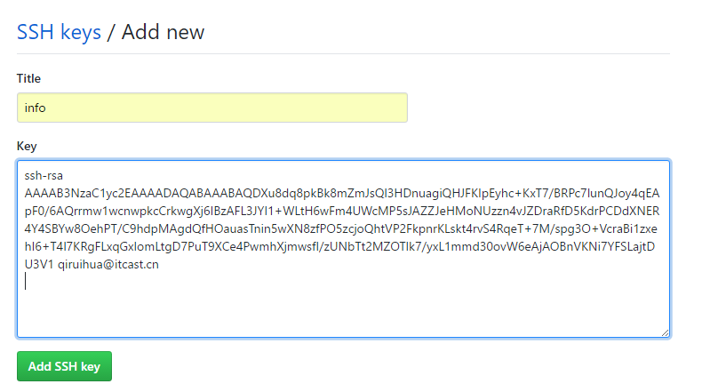 ssh-keygen -t rsa -C "qiruihua@itcast.cn"