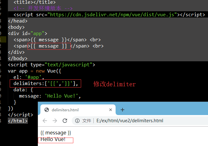 我们也可以通过改变Vue的分隔符来修改Mustache 标签